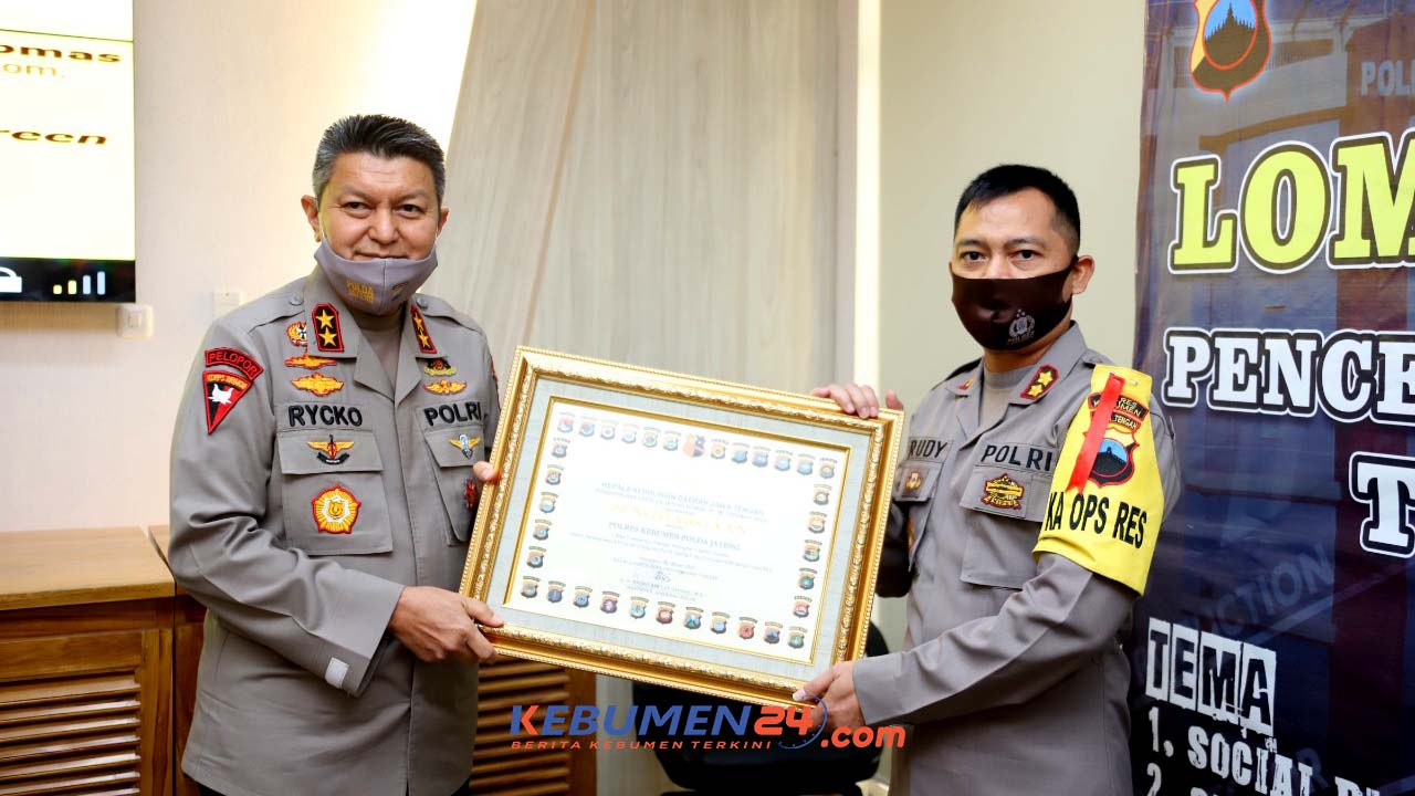Penghargaan iotu diberikan langsung oleh Kapolda Jateng kepada Kapolres Kebumen AKBP Rudy Cahya Kurniawan di Gedung Mapolda Jateng Semarang, Rabu (6/5).