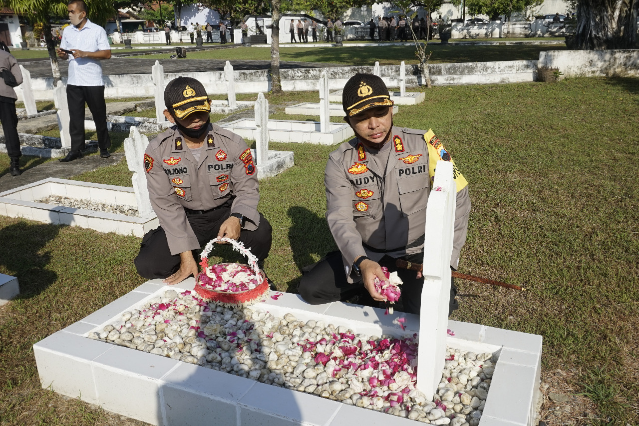 Seusai tradisi upacara ziarah , Kapolres Kebumen bersama seluruh peserta upacara menggelar tabur bunga dan melaksanakan doa bersama. (k24/thr/win)