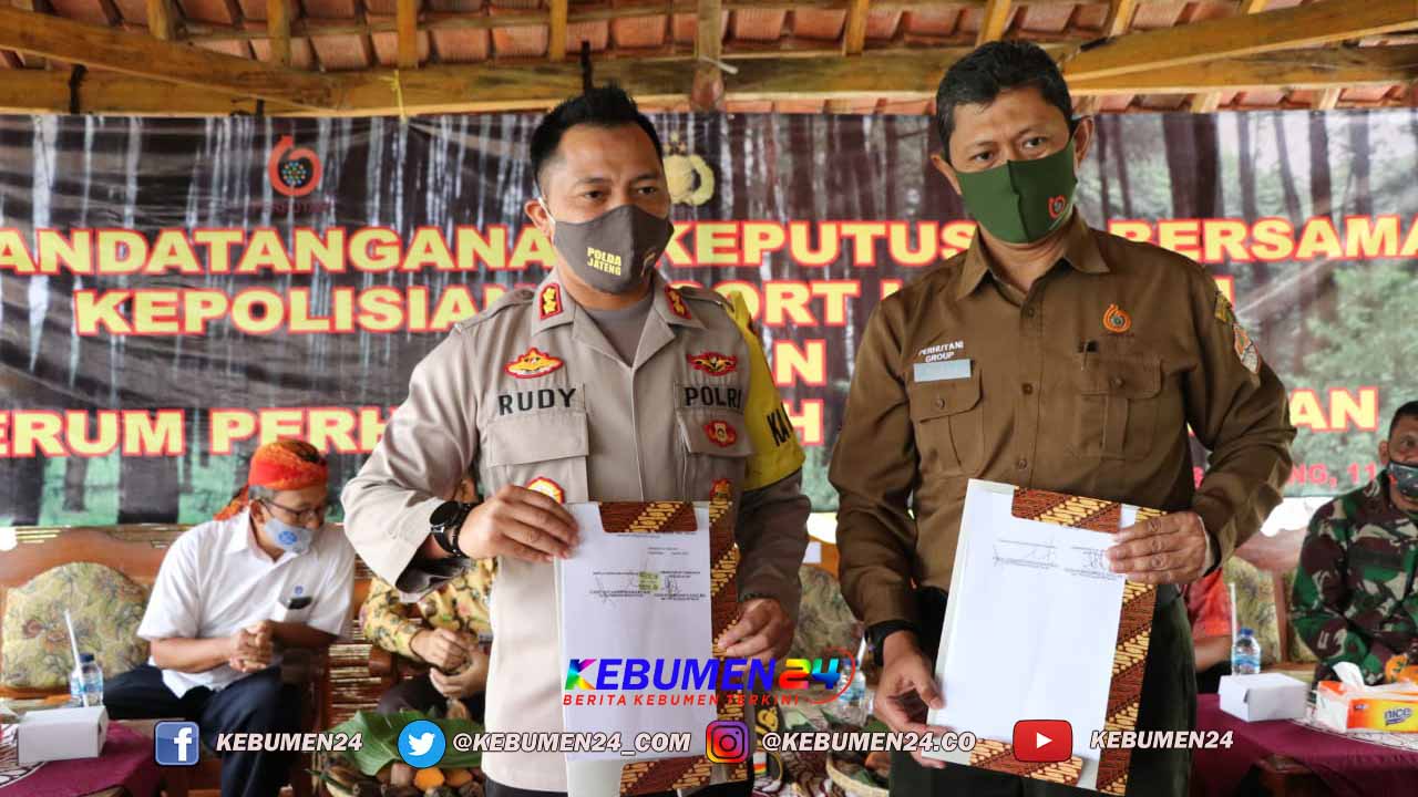 Penandatangan MOU dilakukan secara langsung oleh Kapolres Kebumen AKBP Rudy Cahya Kurniawan dan Administratur KKPH Kedu selatan Yuda suswardanto, di Obyek Wisata Pentulu Indah Karangsambung Kabupaten Kebumen, Selasa, 11 Agustus 2020.