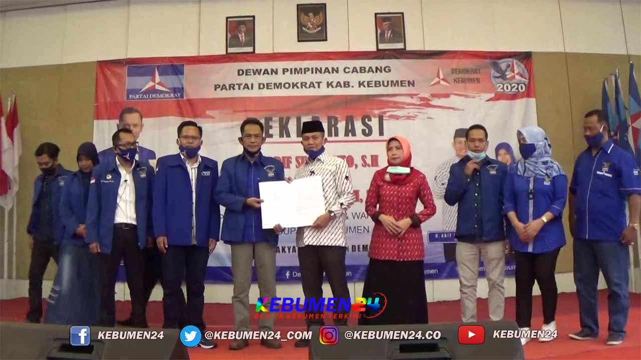 Deklarasi dukungan Partai Demokrat untuk pasangan Arif Rista dilaksanakan di Hotel Mexolie Kebumen, Minggu 23 Agustus 2020. Kegiatan dihadiri oleh anggota DPRD Provinsi Jawa Tengah Kholik Idris, Ketua DPC Partai Demokrat Kebumen Joko Budi Sulistiyanto dan pengurus serta kader terbaik Partai Demokrat.