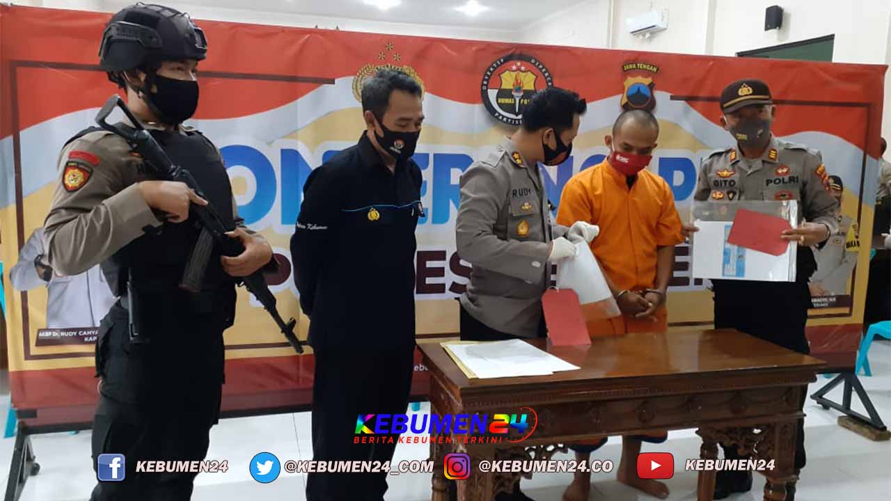 “Baik korban maupun tersangka, sama-sama mengendarai sepeda motor. Saat berpapasan dengan korban, niat jahat tersangka timbul setelah melihat kalung emas,” terang Kapolres Kebumen AKBP Rudy Cahya Kurniawan saat menggelar Pres rilis di Mapolres didampingi Kasubbag Humas Iptu Sugiyanto dan Kapolsek Sempor AKP Sugito Minggu 6 September 2020.