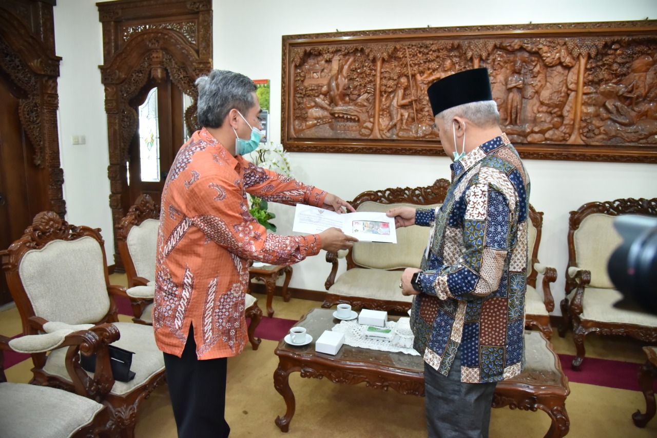 Analis Eksekutif Perwakilan BI Provinsi Jawa Tengah, Purjoko, memperkenalkan uang pecahan tersebut sekaligus menyerahkannya sebagai kenang-kenangan kepada Bupati Yazid Mahfudz di Rumah Dinas Bupati Kebumen, Selasa, 15 September 2020.