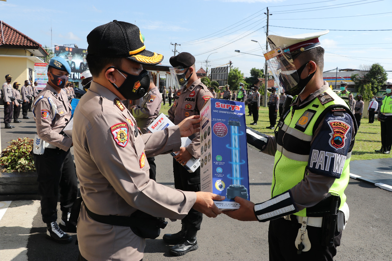 Masih dalam satu rangkaian, PLH Kapolres juga membagikan lampu disinfektan UVC kepada para Bagian serta Satuan Fungsi di Polres Kebumen. Lampu sterilisasi ultraviolet nantinya akan digunakan untuk menyeterilkan ruangan di Polres Kebumen. Baik ruang pelayanan publik maupun ruang staf akan disterilisasi secara berkala untuk memastikan kesehatannya.
