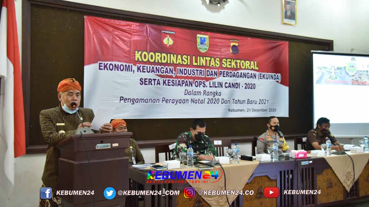 Permintaan ini disampaikan Bupati saat membuka Rakor Lintas Sektoral Ekonomi, Keuangan, Industri dan Perdagangan (Ekuinda) dalam rangka Pengamanan Perayaan Natal Tahun 2020 dan Tahun Baru 2021 Kabupaten Kebumen. Rakor tersebut diselenggarakan di Ruang Jatijajar Komplek Pendopo Rumah Dinas Bupati Kebumen, Senin, 21 Januari 2020.