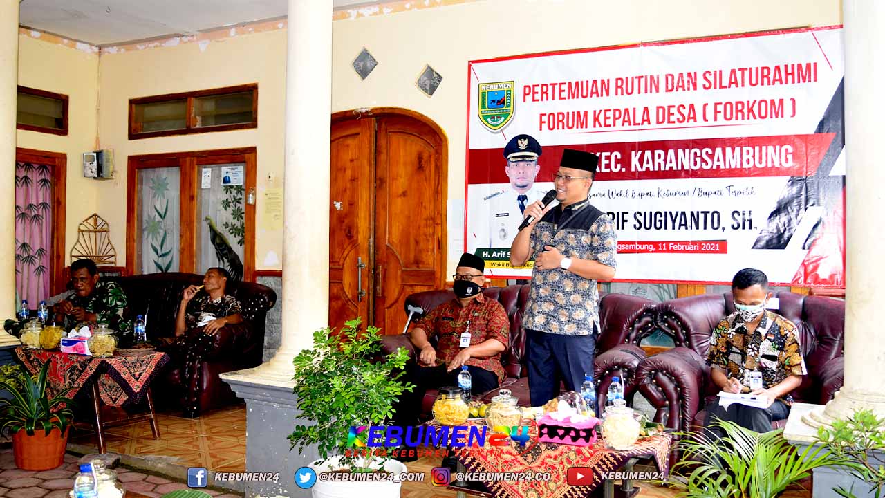 Hal itu disampaikan saat manghadiri acara pertemuan rutin Forum Komunikasi Kepala Desa se-Kecamatan Karangsambung yang berlangsung di rumah Kepala Desa Pujotirto, Kamis 11 Februari 2021. Turut hadir Kepala Dispermades P3A Kabupaten Kebumen, Frans Haidar serta Forkopimcam setempat.