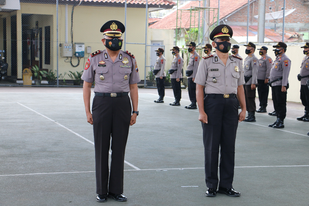 Upacara kenaikan pangkat penghargaan dipimpin langsung oleh Kapolres Kebumen AKBP Piter Yanottama di lapangan indoor tenis Polres Kebumen selepas apel pagi rutin, Senin 1 Maret 2021.