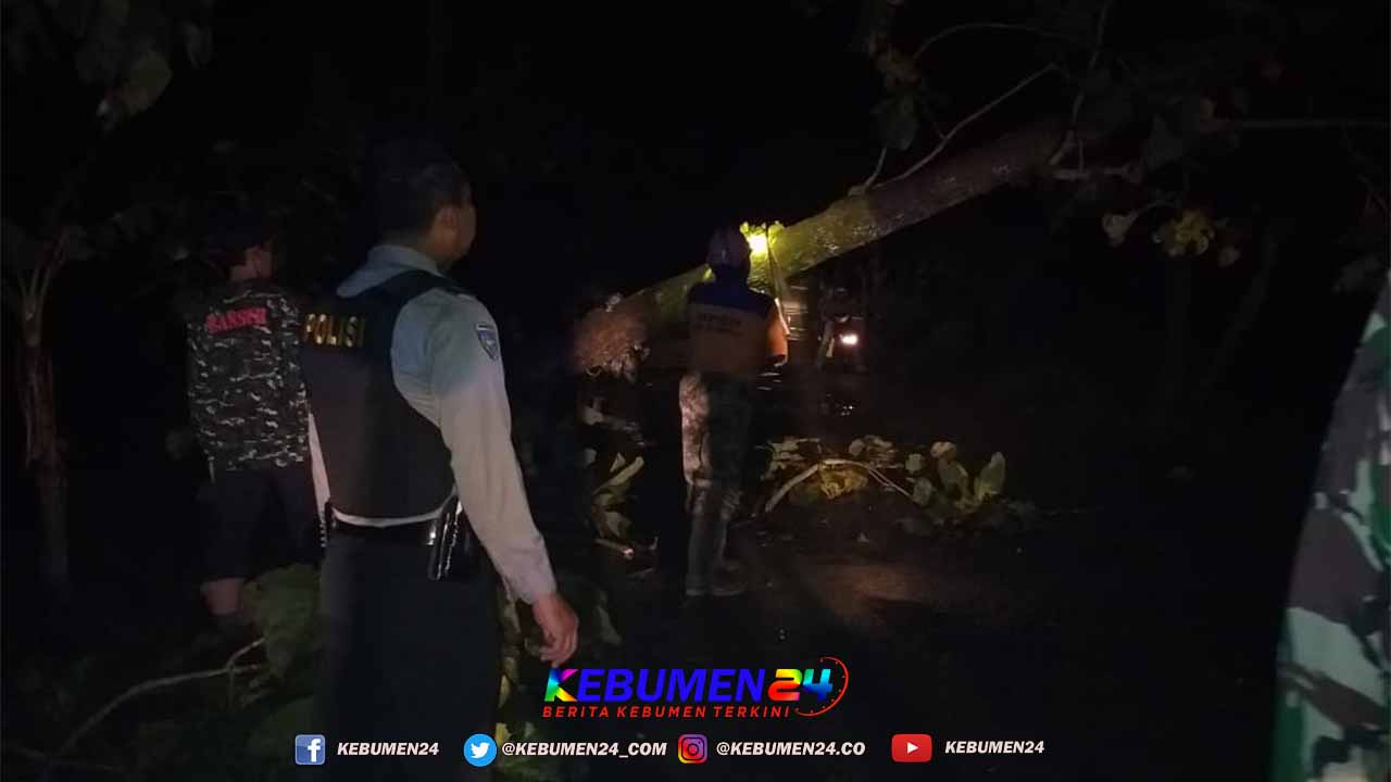 Di Desa Tunggal Roso, pohon randu dan dan albasia tumbang menimpa rumah warga akibat hujan semalam. Desa Lajer Kecamatan Ambal, pohon tumbang menutup bahu jalan yang mengakibatkan arus lalulintas macet.