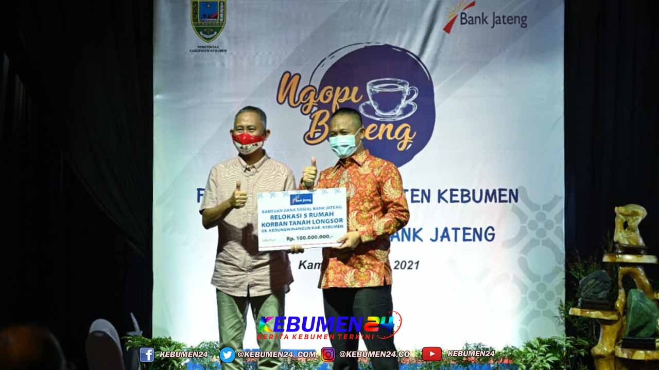 Bantuan dari Dana Corporate Social responsibility (CSR) itu diserahkan langsung secara simbolis oleh Direktur Kepatuhan dan Manajemen Resiko Bank Jateng Oni Suharsono kepada Bupati Kebumen Arif Sugiyanto pada acara Ngopi Bareng bersama Forkopimda Kabupaten Kebumen Kamis, 11 Maret 2021 malam. Turut hadir dalam kesempatan tersebut Sekretaris Daerah Kabupaten Kebumen Ahmad Ujang Sugiono, Jajaran Forkopimda, Pemimpinan Bank Jateng Kebumen HS Yudiantoro beserta Staf Karyawan, serta para OPD dilingkungan Pemkab Kebumen.