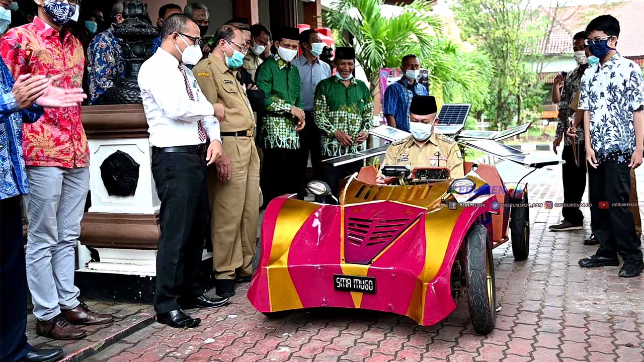 KEBUMEN, Kebumen24.com,- Mobil listrik tenaga hasil karya Siswa SMA Muhamadiyah Gombong resmi dilaunching oleh Bupati Kebumen Arif Sugiyanto. Mobil listrik tersebut, merupakan kendaraan pertama di Kebumen dengan memanfaatkan Energi terbarukan.