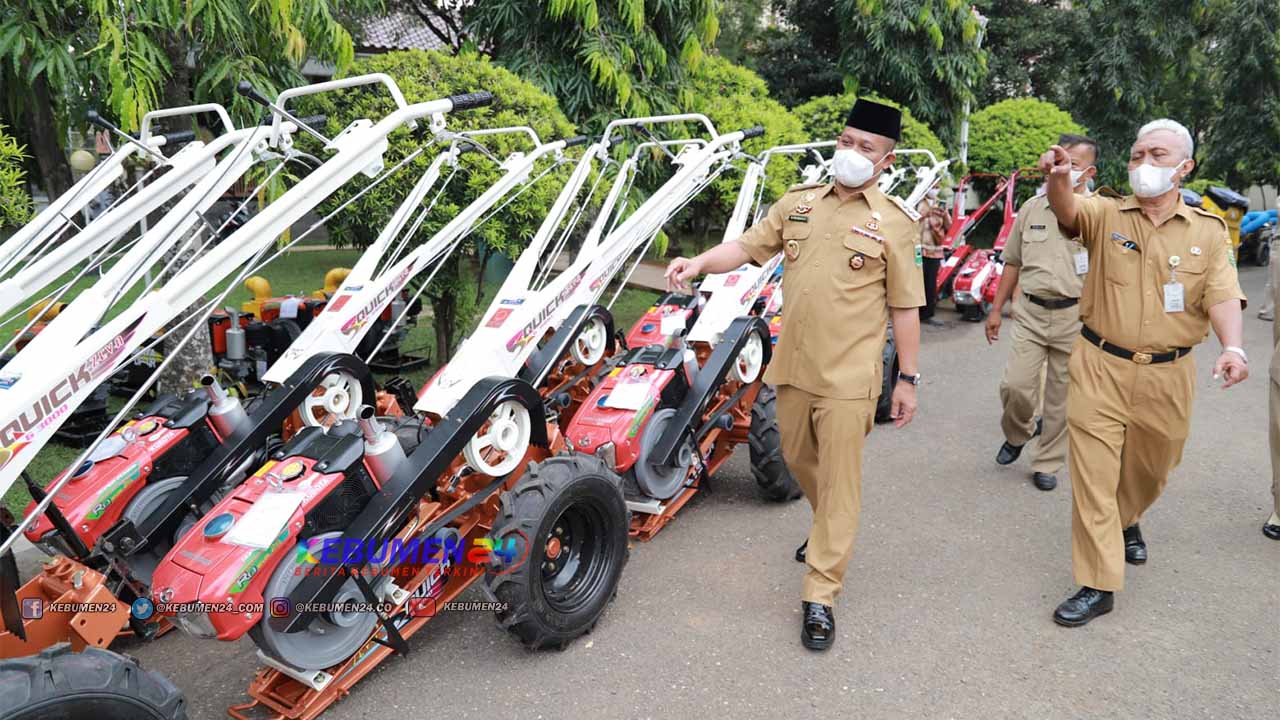KEBUMEN, Kebumen24.com – Dalam rangka meningkatkan produktivitas petani, sebanyak 52 alat mesin pertanian (alsintan) diserahkan kepada para Gabungan Kelompok Tani (Gapoktan) dan Kelompok Tani (Poktan). Bantuan ini diserahkan secara simbolis oleh Bupati Kebumen Arif Sugiyanto di Pendopo Rumah Dinas Bupati, Senin 9 Agustus 2021.