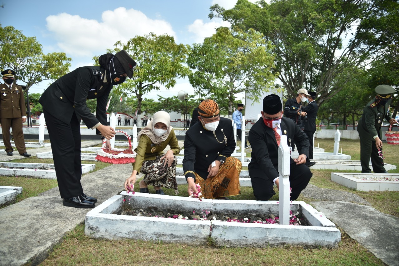 Ziarah dan tabur Bunga dilakukan Bupati Kebumen Arif Sugiyanto bersama Wakil Bupati Ristawati Purwaningsih dan jajaran Forkopimda, Selasa 17 Agustus 2021. Kegiatan diawali dengan apel yang dipimpin oleh Ketua DPRD Kebumen Sarimun dan Doa bersama.