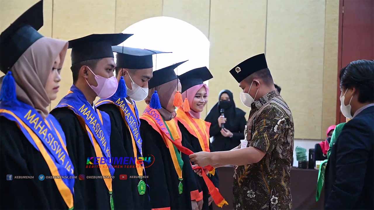 ‘’ ’Atas nama Bupati Kebumen mengucapkan selamat kepada wisudawan yang telah menyelesaikan studi pembelajaran di IAINU Kebumen. Dengan wisuda ini, nantinya saudara-saudara bisa berpikir dan bertindak sebagai insan intelektual yang mengedepankan perilaku yang bermartabat dan berbudaya.’’ucap Bupati.