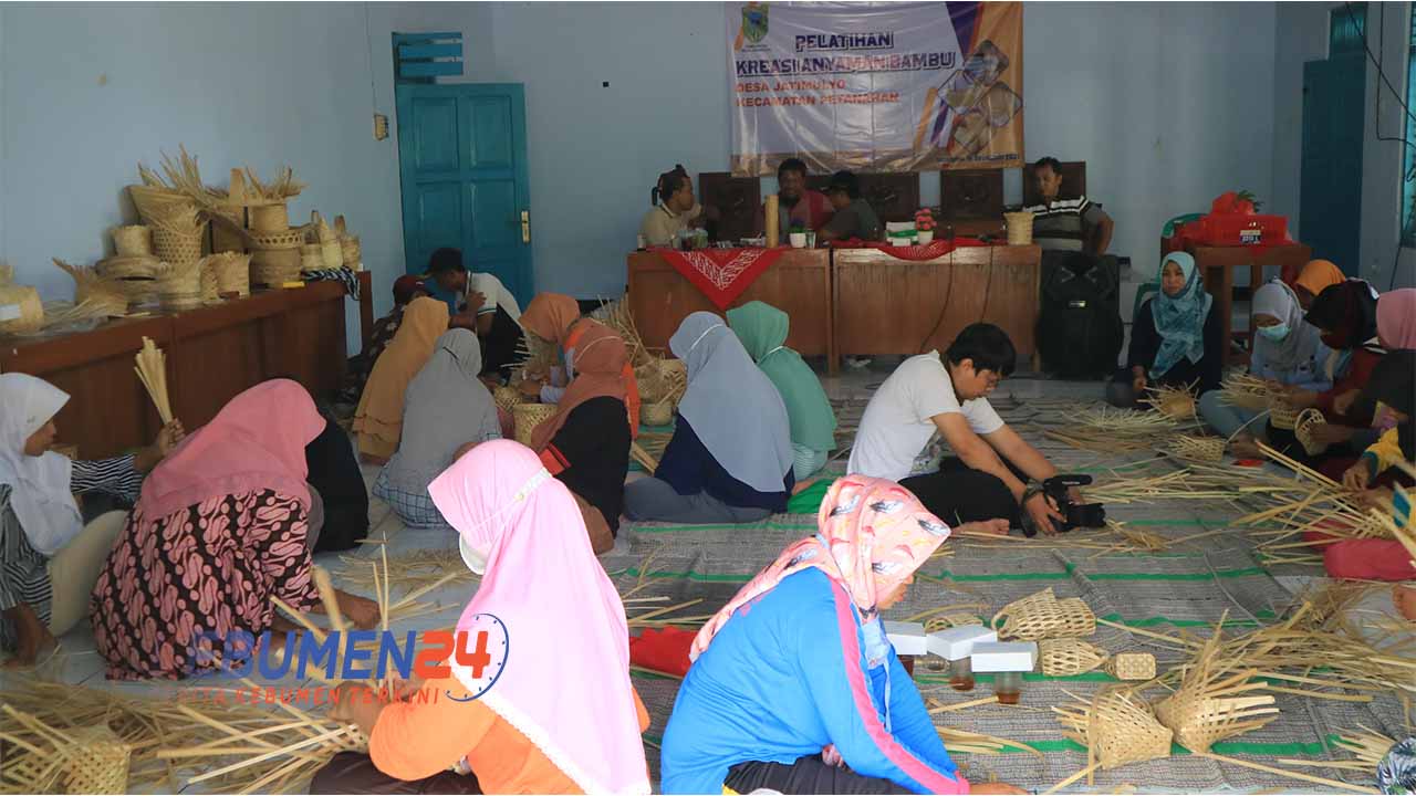 PETANAHAN, Kebumen24.com – Untuk meningkatkan skill kemampuan warga dalam pembuatan kerajinan bambu agar lebih bervariatif, Pemerintah Desa Jatimulyo Kecamatan Petanahan Kabupaten Kebumen menggelar pelatihan kreasi anyaman bamboo. Kegiatan diikiuti 20 warga.