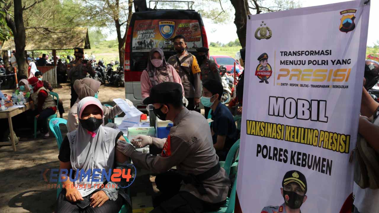 KEBUMEN, Kebumen24.com – Ditengah libur Natal dan tahun baru, Polres Kebumen menghadirkan mobil vaksin keliling Presisi di objek wissata Pantai Setrojenar Kecamatan Buluspesantren. Program jemput bola ini diperuntukan bagi wisatawan yang belum vaksin.