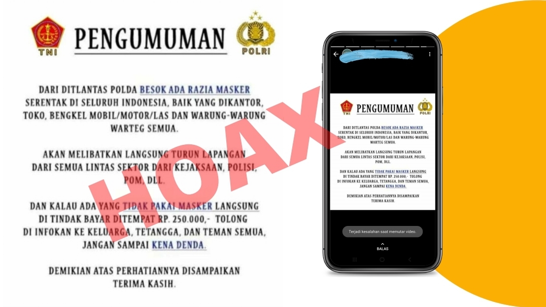 KEBUMEN, Kebumen24.com – Marak beredar pesan berantai jika kepolisian dalam hal ini Ditlantas Polda, akan menggelar razia masker di seluruh Indonesia bisa dipastikan itu adalah berita bohong atau hoax.