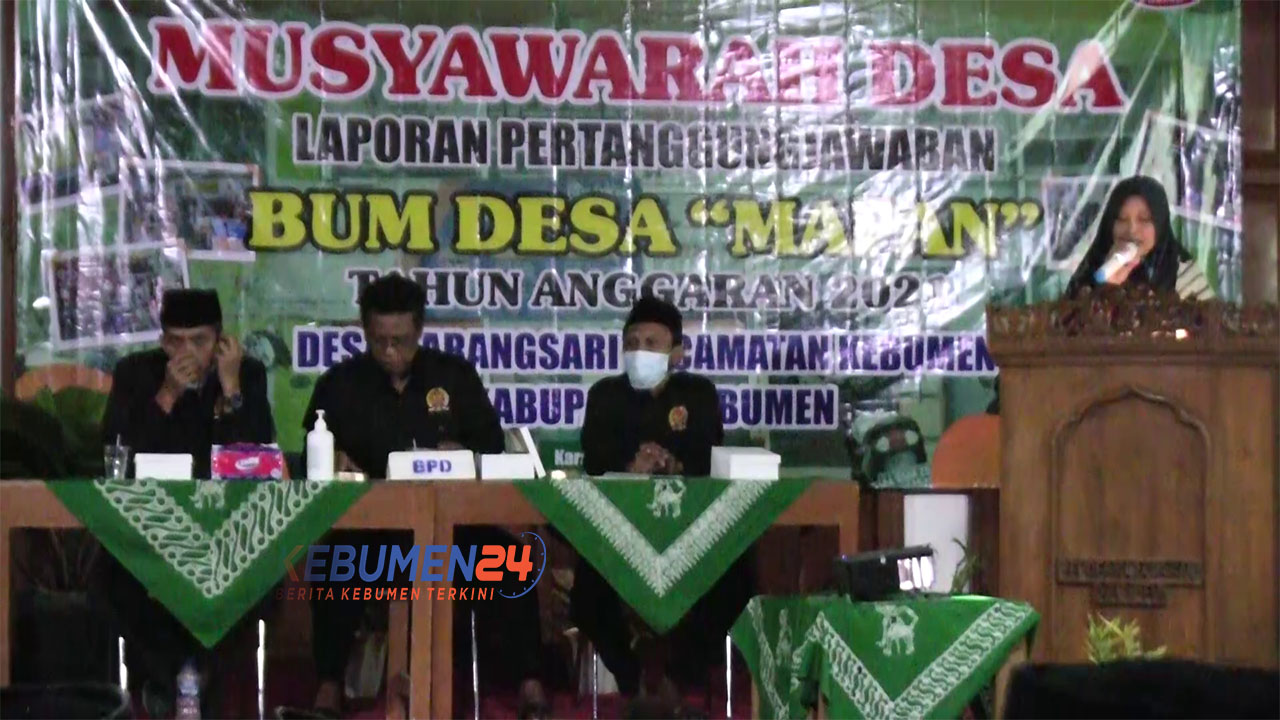 KEBUMEN, Kebumen24.com – Badan Permusyawaratan Desa (BPD) Karangsari Kecamatan Kebumen mengadakan acara Musyawarah Desa (Musdes) tentang Laporan Pertanggungjawaban BUMDes MAPAN Tahun 2021. Kegiatan berlangsung Rabu 16 Maret 2022, di Halaman Kantor desa setempat.