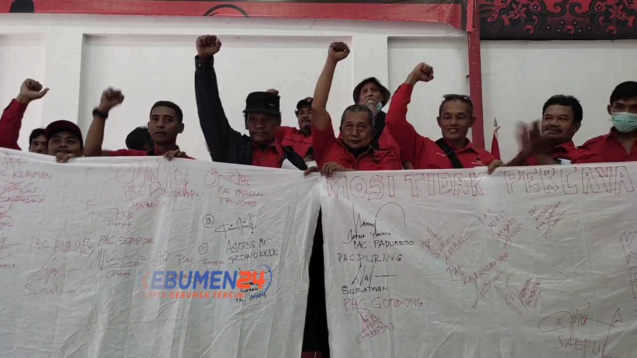 “Hari ini kita melakukan tanda tangan bersama 23 PAC. Ini sebagai tanda mosi tidak percaya terhadap ketua partai. Surat mosi tidak percaya tersebut sudah kita berikan langsung ke DPP kemarin,” jelas Ketua PAC Puring Suratman.