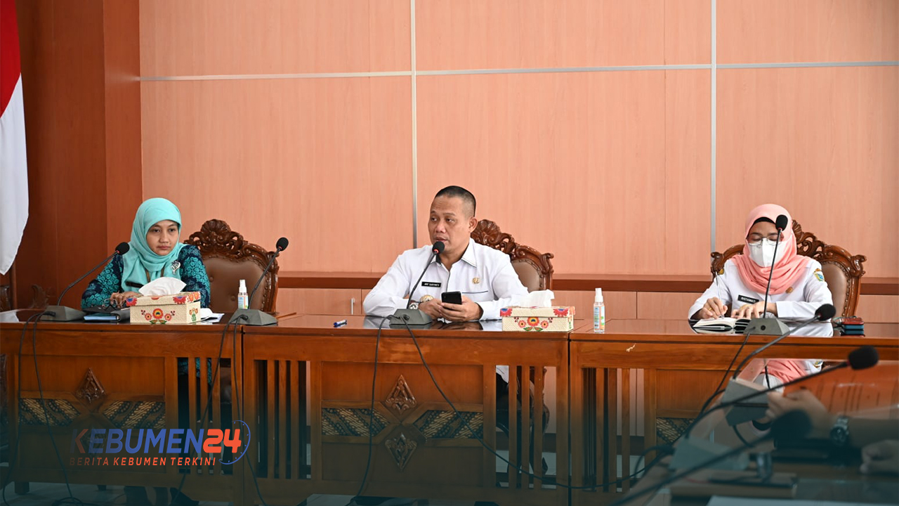 Rapat digelar di Ruang Aroengbinang, Komplek Pendopo Kabumian, Rabu 27 April 2022. Kegiatan juga dihadiri Wakil Bupati Ristawati Purwaningsih dan sejumlah pimpinan OPD.