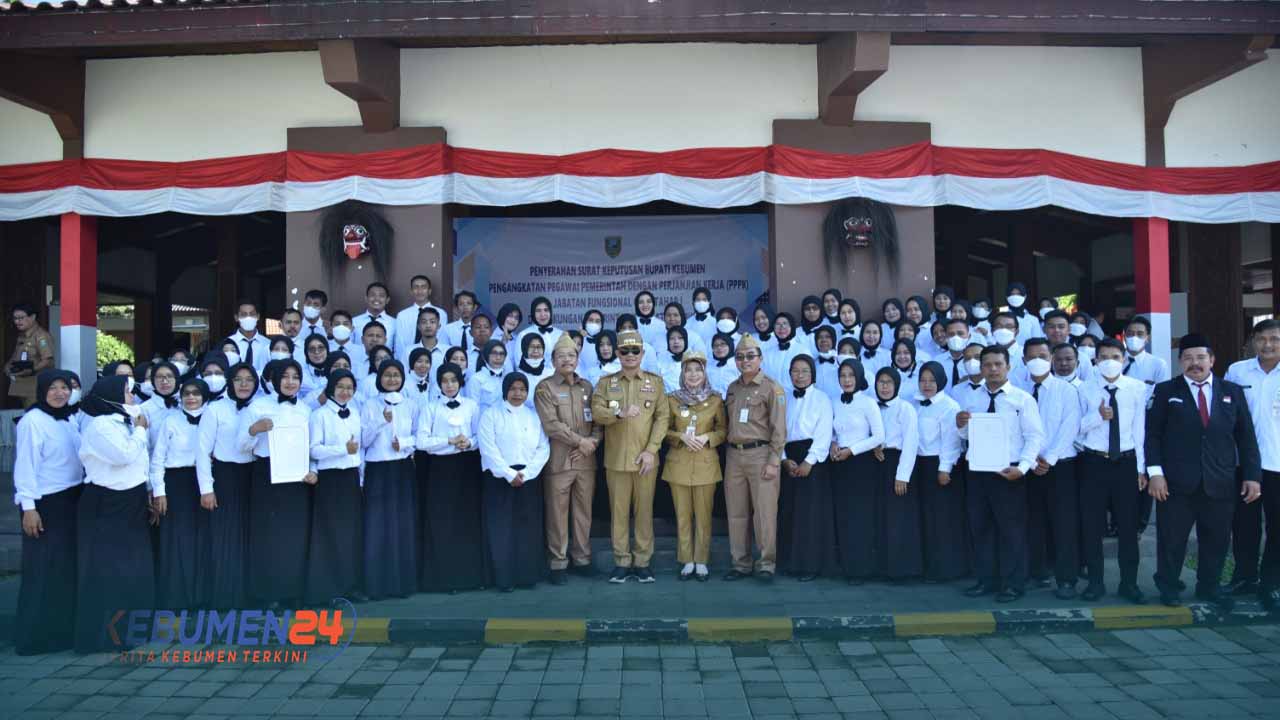 KEBUMEN, Kebumen24.com – Di hari pertama masuk kerja, Bupati Kebumen Arif Sugiyanto menyerahkan Surat Keputusan (SK) kepada 1.308 Guru dengan status Pegawai Pemerintah dengan Perjanjian Kerja atau Guru PPPK. Penyerahan berlangsung di halaman Pendopo Kabumian, Senin 9 Mei 2022.