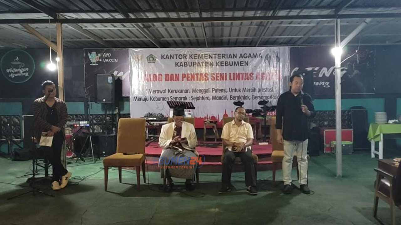 KEBUMEN, Kebumen24.com,- Untuk menguatkan jalinan kerukunan antar umat beragama, Kantor Kementerian Agama Kebumen menggelar Dialog dan pentas seni lintas agama. Acara mengambil tema Merawat Kerukunan Menggali Potensi Menuju Kebumen sejahtera Mandiri Bersama Rakyat.