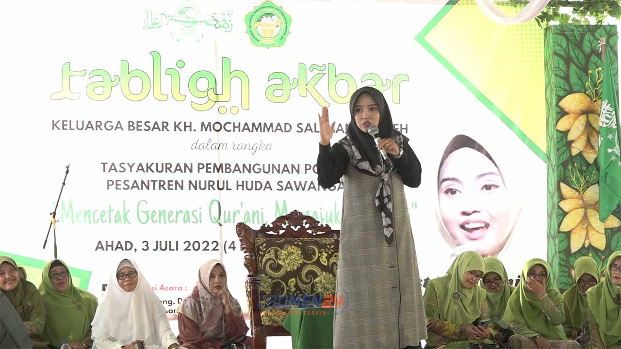 KEBUMEN, Kebumen24.com – Pondok Pesantren Nurul Huda Desa Sawangan Kecamatan Kuwarasan Kebumen menggelar Tabligh Akbar Tasyakuran Pembangunan Gedung baru Keluarga Besar KH. Mochamad Saliman Sholeh. Kegiatan dengan tema “ Mencetak Genarasi Qurani, Memajukan Negeri’’ ini, menghadirkan Ustadzah Mumpuni Handayayekti dari Cilacap.