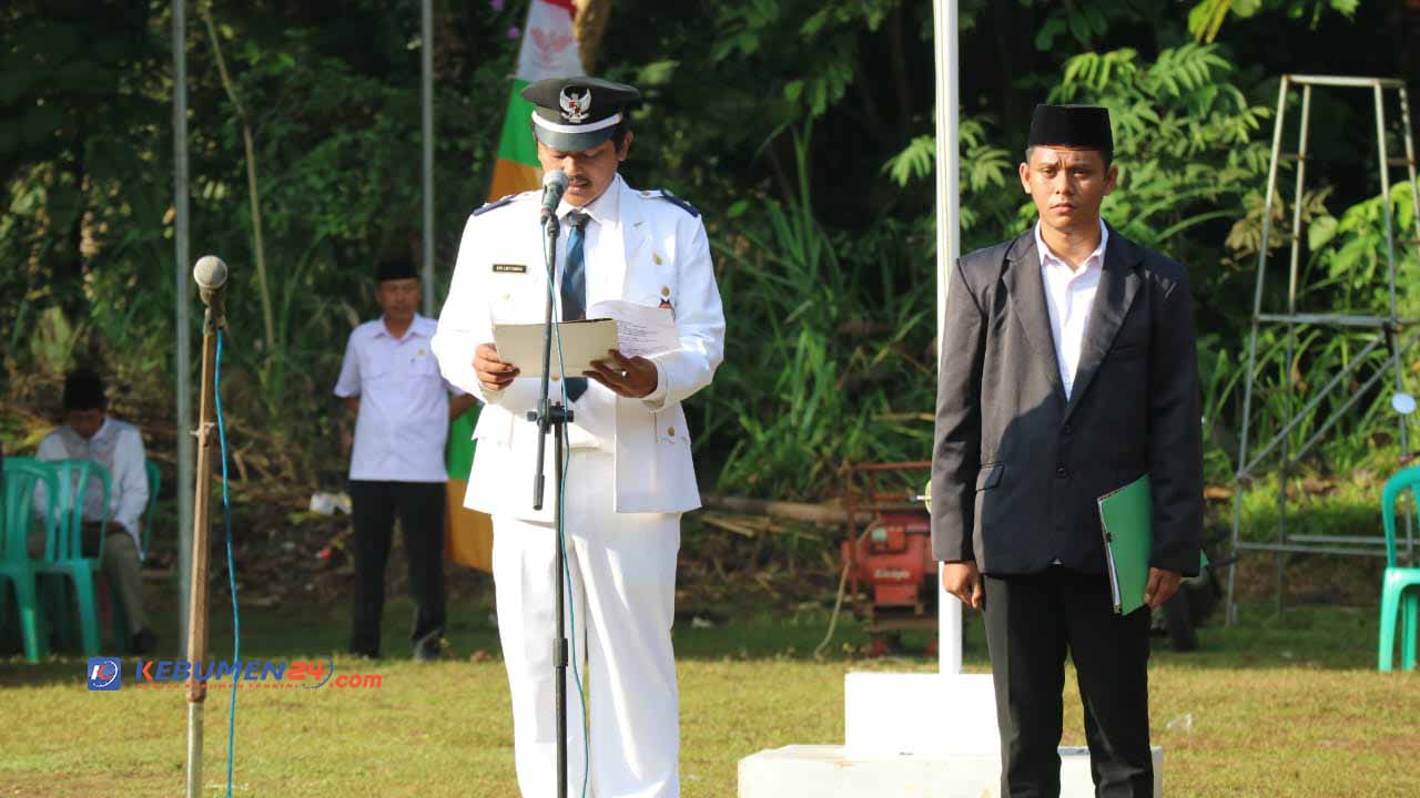 KARANGANYAR, Kebumen24.com – Dalam rangka memperingati Hari Kemerdekaan RI ke 77, pemerintah desa Grenggeng Kecamatan Karanganyar Kebumen menggelar upacara bendera. Upacara dipimpin langsung oleh Kepala Desa Gregeng Eri Listiawan dan diikuti seluruh lembaga desa, ormas, para pelajar dan warga masyarakat.