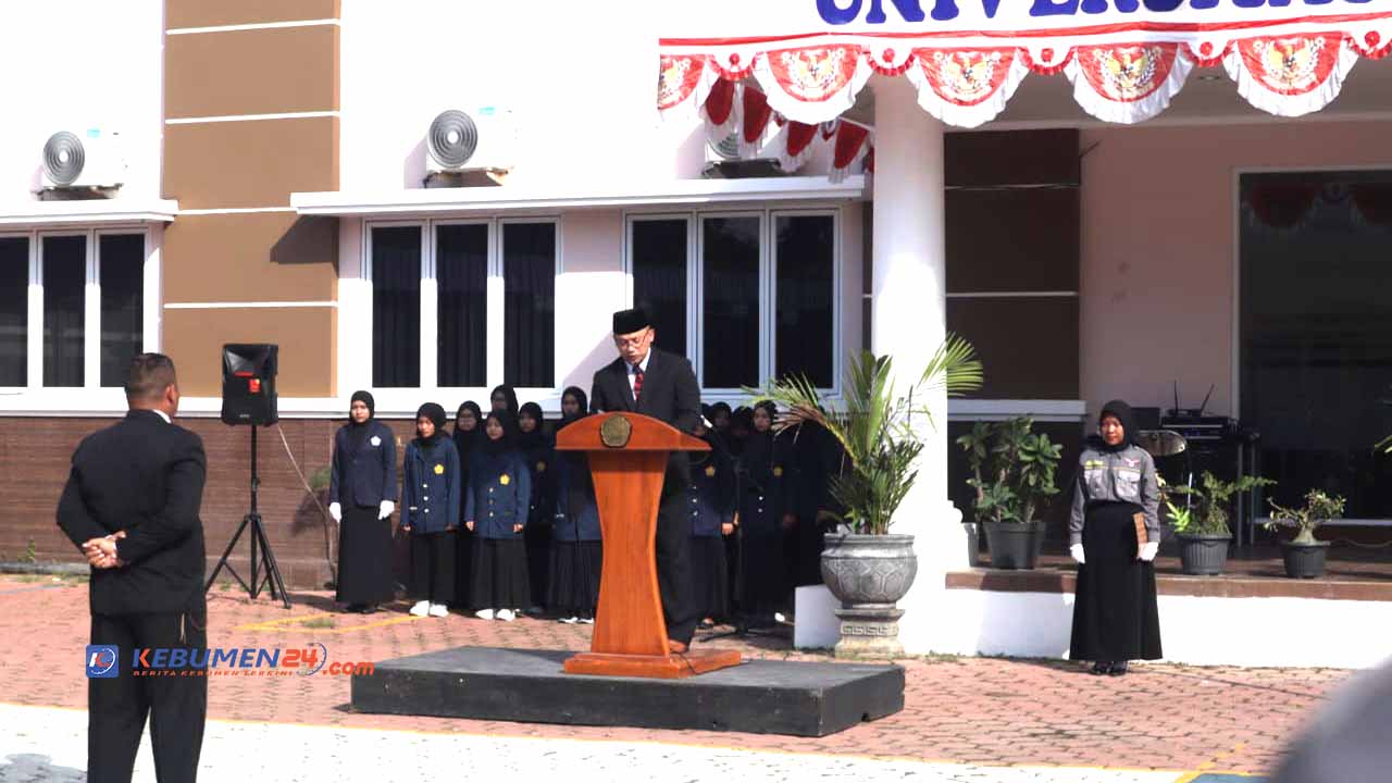 PEJAGOAN,Kebumen24.com – Dalam rangka memperingati HUT Kemerdekaan RI ke 77, Universitas Putra Bangsa menggelar upacara pengibaran bendera merah putih. Dalam kegiatan ini, bertindak sebagai Inspektur upacara Rektor UPB Dr. Gunarso Wiwoho, S.E., M.M. dan sekaligus membacakan sambutan tertulis Kementerian Pendidikan, Kebudayaan, Riset, dan Teknologi, Nadiem Anwar Makarim.