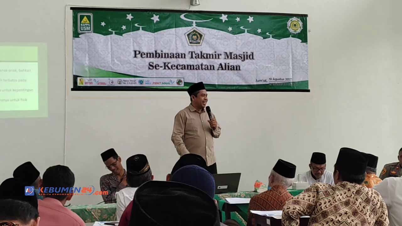 Sementara itu Kasi Bimas Islam Kantor Kemenag Kabupaten Kebumen Salim Wazdy dalam materinya menyampaikan Masjid adalah pusat ibadah bagi umat Islam. Dimana didalamnya berfungsi untuk membina keimanan, ketaqwaan, kepribadian dan hukum hukum Islam.