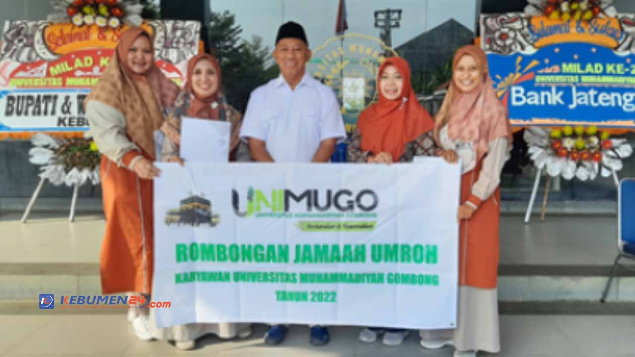 GOMBONG, Kebumen24.com – Empat orang 4 karyawan Universitas Muhammadiyah Gombong Kebumen, mendapat hadiah berangkat Umroh gratis ke tanah suci mekan. Hadiah ini diberikan sebagai reward atau penghargaan atas pengabdianya selama 10 tahun di Unimugo.