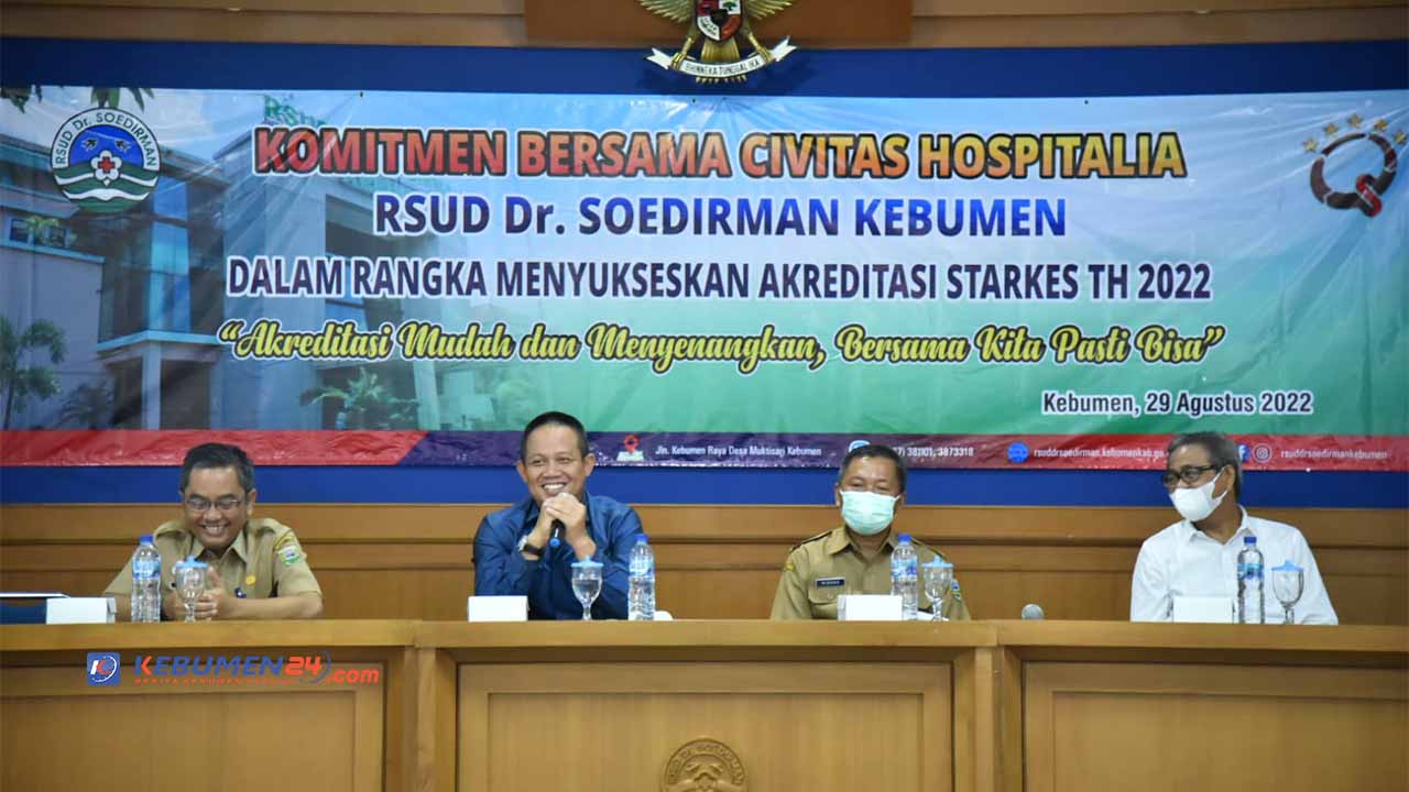 Hal itu ia sampaikan, saat menghadiri acara Komitmen Bersama Civitas Hospitalic RSUD dr.Soedirman Kebumen Dalam Rangka Menyukseskan Akreditasi Starkes 2022, di RSUD Soedirman, Senin 29 Agustus 2022. Menurutnya, akreditasi merupakan penilaian pengakuan terhadap mutu pelayanan rumah sakit setelah dilakukan penilaian bahwa rumah sakit memang benar-benar memenuhi standar-standar yang telah ditetapkan Kementerian Kesehatan.
