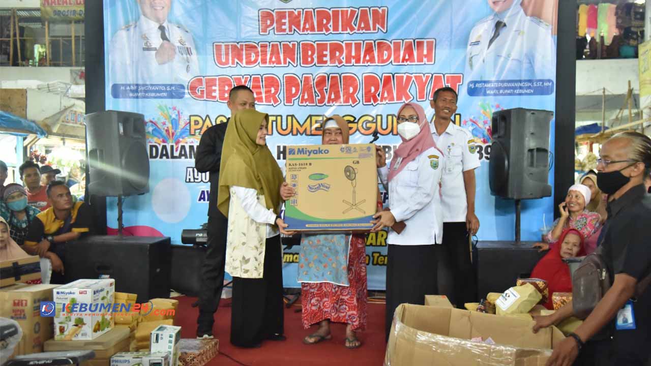 Penarikan Undian Berhadiah Gebyar Pasar Rakyat sudah dilakukan di tiga tempat, pertama Pasar Prembun, Pasar Puring, dan Pasar Tumenggungan. Baik pengunjung dan penjual mendapat kupon berhadiah laptop, kulkas, kipas angin, kompor gas, magic com, dan peralatan rumah tangga lainnya.(k24/*).
