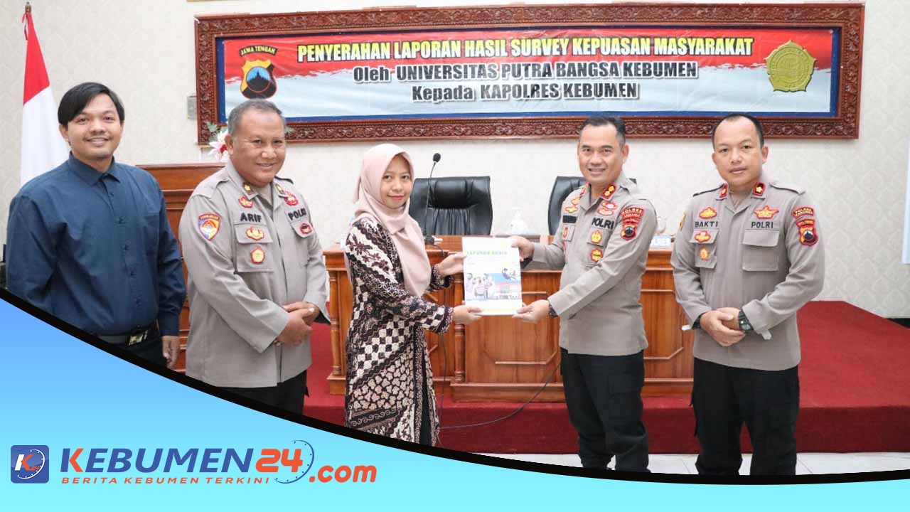 Hal ini terungkap saat Kapolres Kebumen AKBP Burhanuddin menerima buku laporan akhir survei kepuasan masyarakat terhadap pelayanan Polri di Polres Kebumen dari Dr Harini Abrilia Setyawati, perwakilan LP3M Universitas Putra Bangsa Kebumen, Senin 28 November 2022.