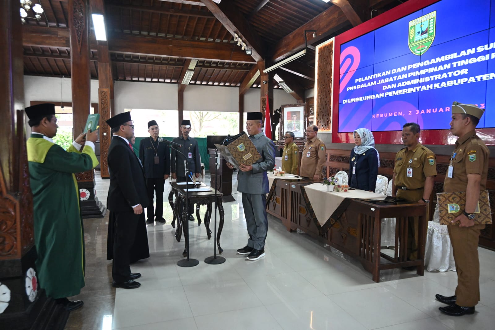 KEBUMEN, Kebumen24.com – Bupati Kebumen Arif Sugiyanto kembali melantik delapan pejabat tinggi pratama dan administrator. Dua diantaranya adalah eselon II, Pelantikan berlangsung di Pendopo Kabumian, Senin 2 Januari 2022.