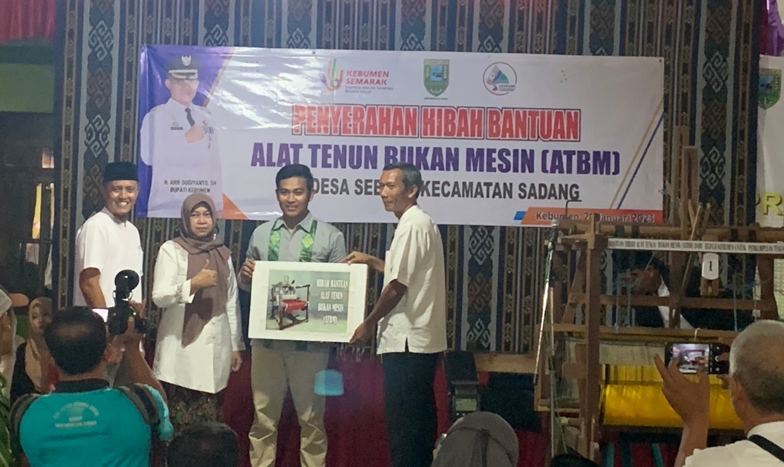 KEBUMEN, Kebumen24.com – Pemerintah Kabupaten Kebumen memberikan hibah bantuan alat tenun bukan mesin (ATBM) ssbanyak lima unit dan bahan produksi sebanyak lima paket kepada perkumpulan tenun Kartinesia Jaya di Dukuh Jojogan, Desa Seboro RT 02 RW 08, Kec. Sadang, Jumat 20 Januari 2023.