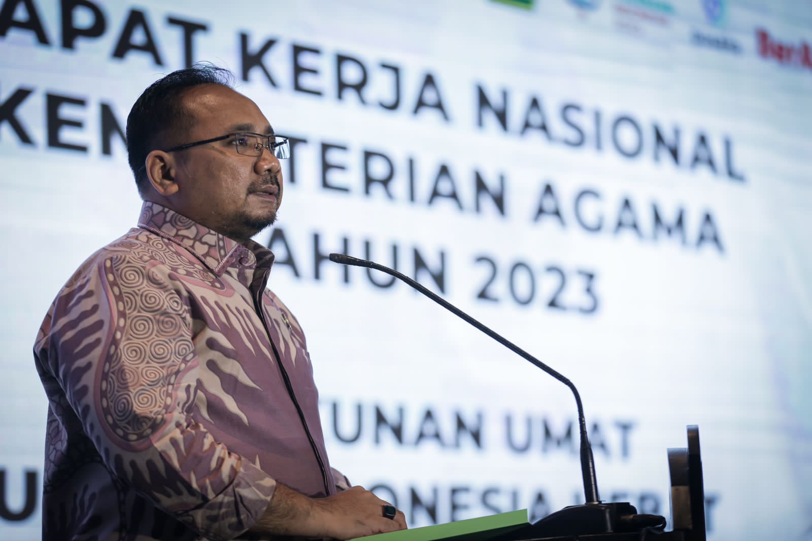 Hal itu ditegaskan Menag saat membuka Rapat Kerja Nasional (Rakernas) Kementerian Agama tahun 2023 di Surabaya, Sabtu 4 Februari 2023. Hadir, Wakil Menteri Agama Zainut Tauhid Sa’adi. Rakernas diikuti seluruh jajaran eselon I dan II, pusat dan daerah. Hadir juga para pimpinan Perguruan Tinggi Keagamaan Negeri (PTKN).