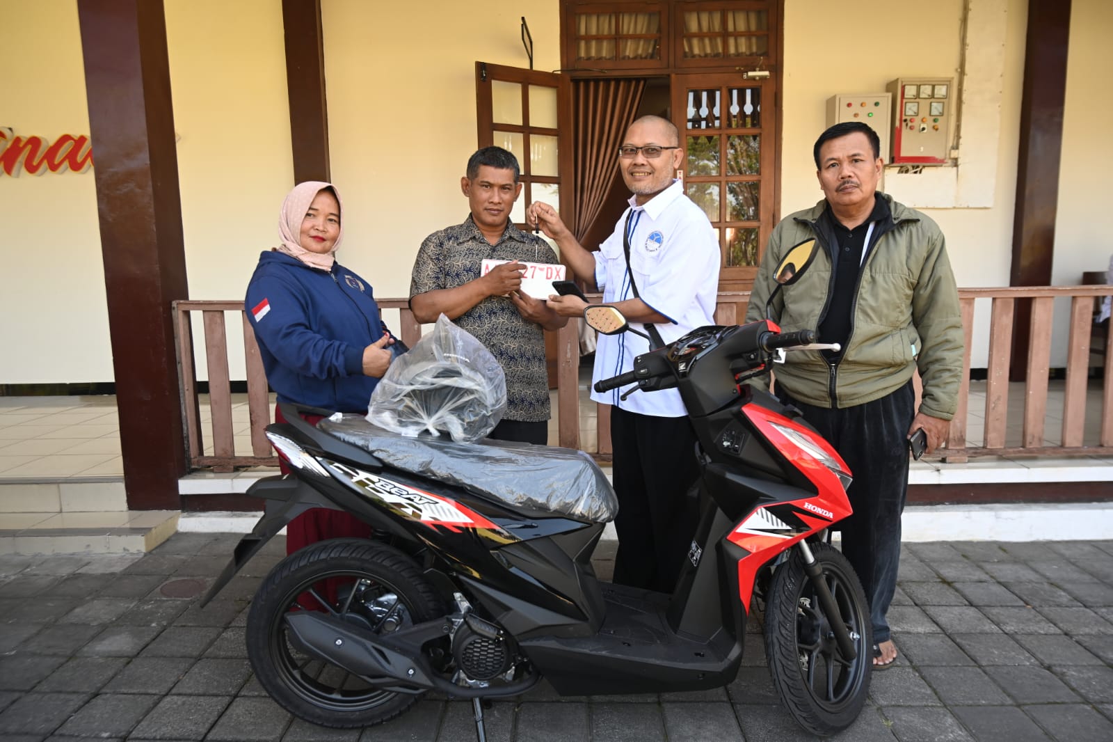 “Tidak menyangka, waktu itu begitu mendengar saya dapat udian, saya lemas, benar-benar lemas. Masih nggak nyangka, baru kali ini dapat hadiah besar sepeda motor, jadi saya alhamdulillah, terima kasih betul kepada Pak Bupati atas kebaikan hatinya,” tuturnya.