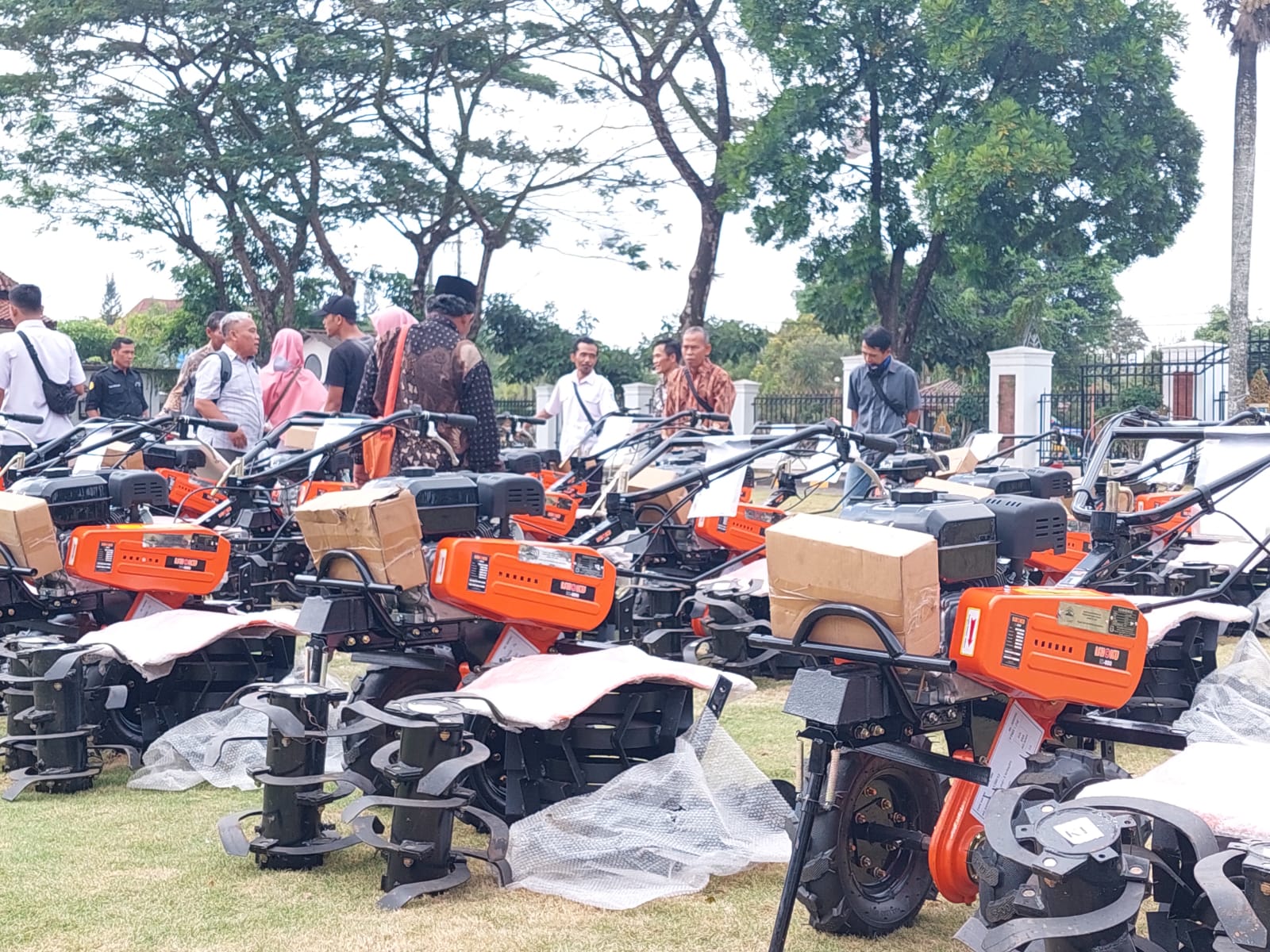 Bantuan yang berasal dari anggaran Dana Bagi Hasil Cukai Hasil Tembakau (DBHCHT) itu diserahkan langsung oleh Bupati Kebumen Arif Sugiyanto di halaman Pendopo Kabumian, pada Rabu 7 Juni 2023. Jumlah alsintan yang diberikan adalah 65 unit, terdiri dari 24 unit cultivator, 1 unit traktor rotary dan 40 unit hand sprayer yang diperuntukkan bagi 33 kelompok tani atau gapoktan di 9 kecamatan penghasil tembakau di Kabupaten Kebumen