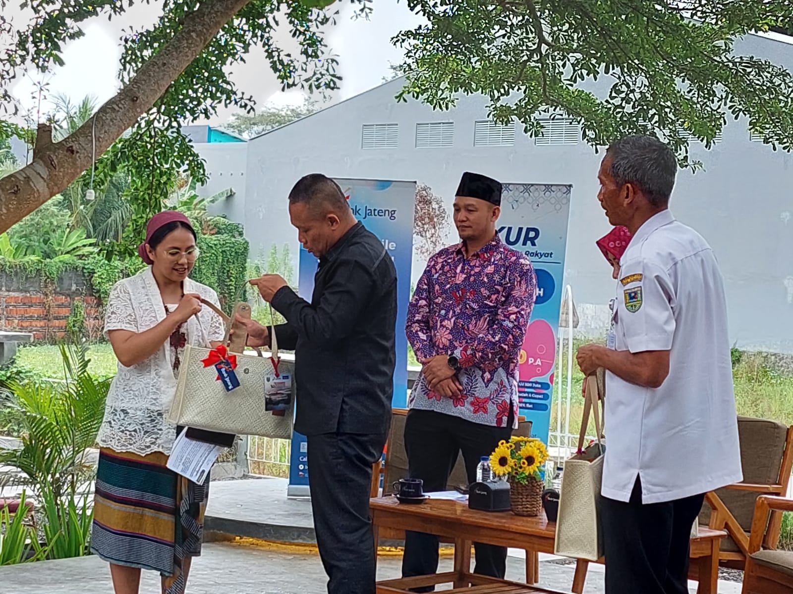 “Sebuah usaha itu nggak bisa sendiri. Misal pengen jualan bolu, dia harus punya distributor tepung, itu sudah contoh kolaborasi. Kemudian butuh modal, bisa kolaborasi dengan perbankan seperti Bank Jateng. Kemudian pemasaran, bisa dititipkan ke toko modern, karena di sini pasar modern itu wajib menjual produk UMKM sesuai standar,” kata Rista.
