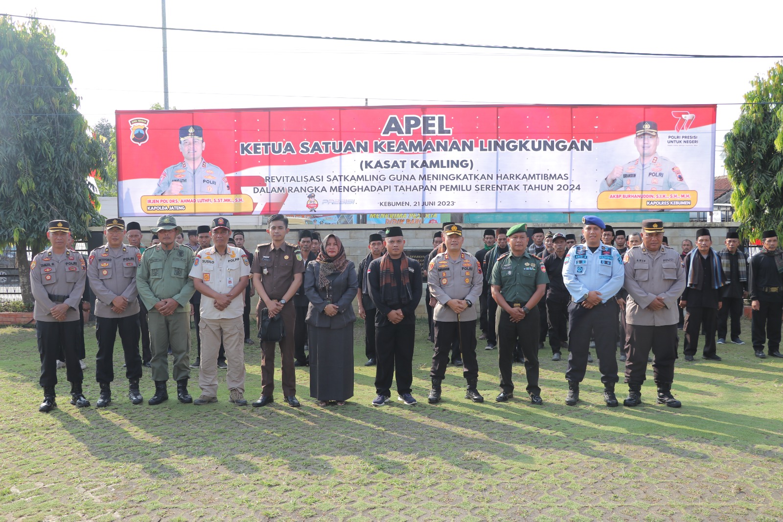 KEBUMEN, Kebumen24.com – Jelang persiapan untuk mengamankan jalannya Pemilu 2024, Polres Kebumen melakukan Apel Kepala Satuan Keamanan Lingkungan (Kasat Kamling) 2023. Kegiatan dilaksanakan di halaman Mapolres Rabu 21 Juni 2023.