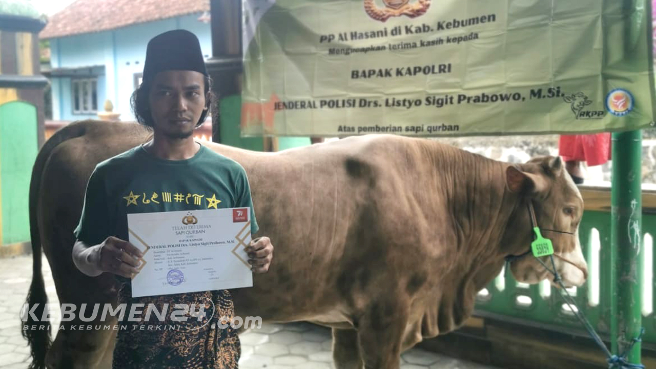 KEBUMEN, Kebumen24.com,- Pondok Pesantren Alhasani Desa Jatimulyo Kecamatan Alian Kabupaten Kebumen menerima bantuan berupa 1 ekor sapi kurban untuk perayaan idul adha 1444 H. dari Kapolri Jenderal Listyo Sigit Prabowo. Bantuan ini merupakan ke dua kalinya.