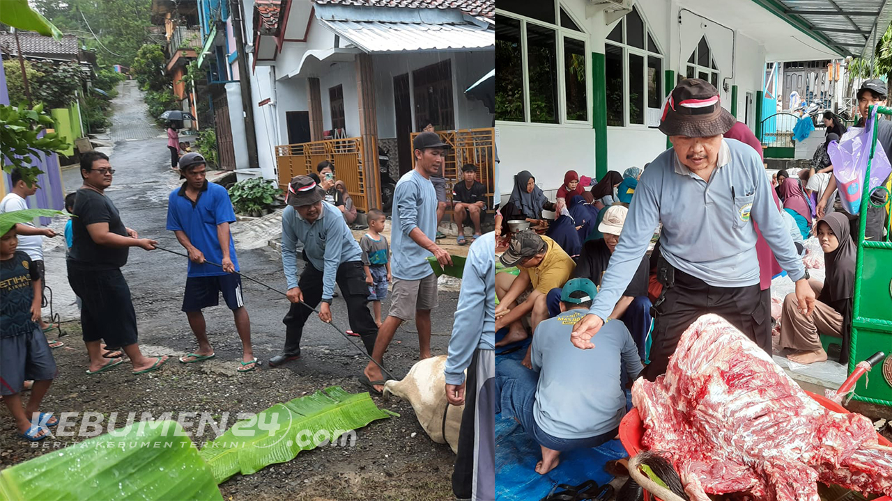KEBUMEN, Kebumen24.com – Momen hari raya Idul Adha 1444 H, disambut dengan penuh kebahagiaan oleh Warga Umat Muslim di Perumahan Mega Biru 2 Kelurahan Bumirejo Kecamatan Kebumen. Kebahagian diwujudkan dalam bentuk penyembelihan hewan kurban sebanyak 5 ekor sapi.