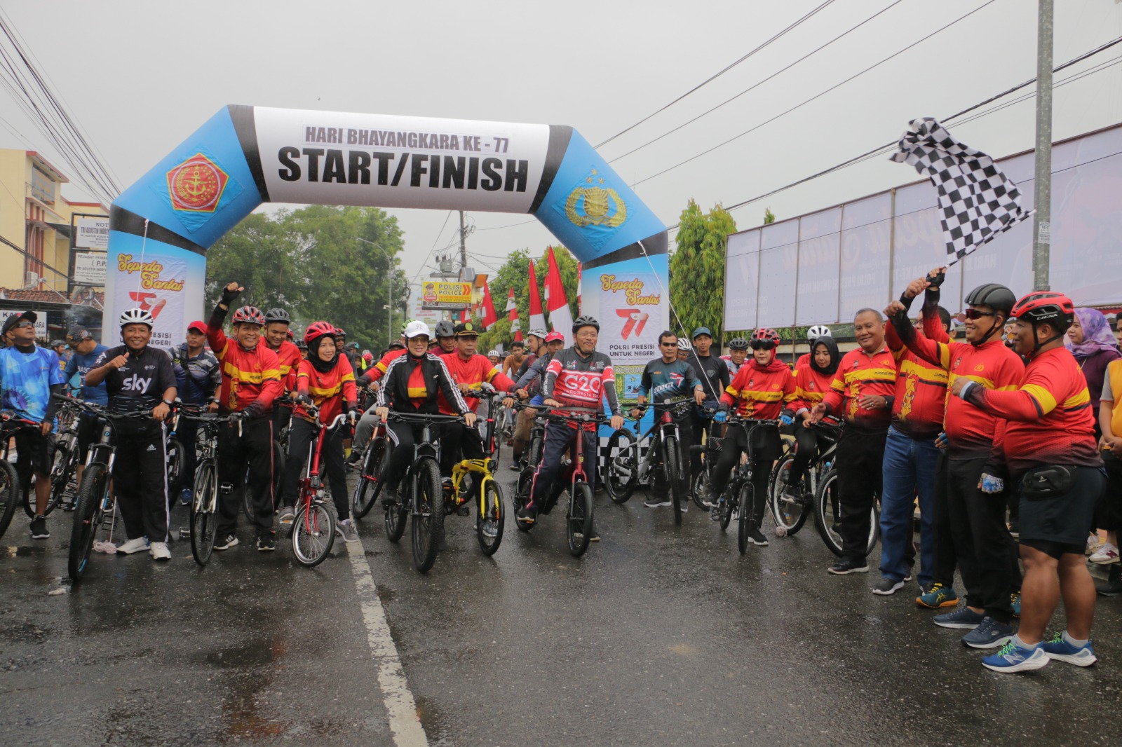 KEBUMEN, Kebumen24.com – Meski sempat diguyur hujan, ternyata tidak menyurutkan niat ribuan warga dalam mengikuti kegiatan “Sepeda Santai HUT Bhayangkara Ke 77,” yang digelar Polres Kebumen. Setidaknya ada sekitar 1500 peserta yang mengikuti kegiatan tersebut.