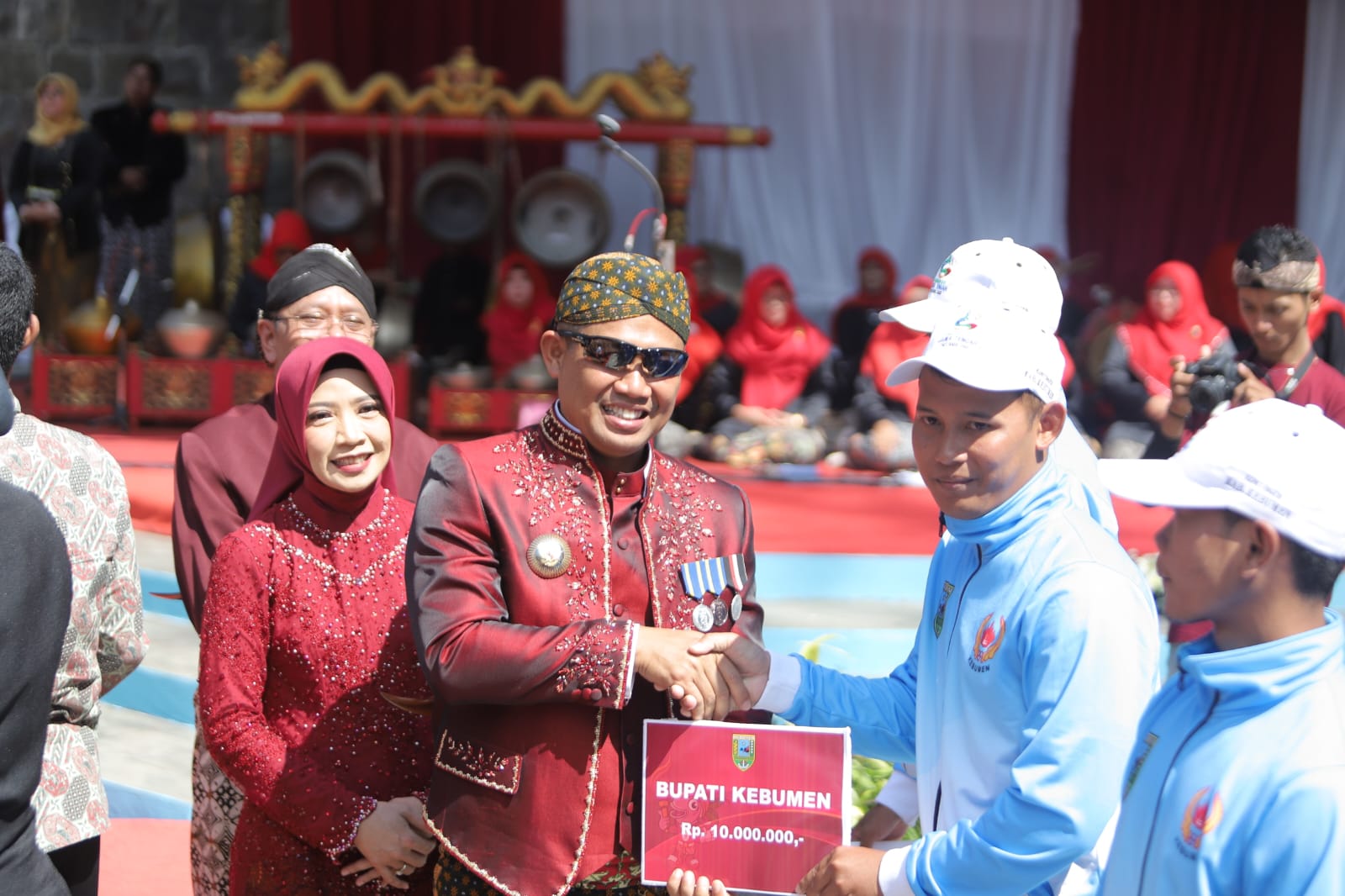 Reward diberikan Bupati disela sela acara Upacara Peringatan Hari Jadi Kebumen ke 394 di Pantai Logending Kecamatan Ayah, Senin 21 Agustus 2023. Hadir Hadir Wakil Bupati Ristawati Purwaningsih dan OPD, jajaran Forkopimda serta Ketua KONI Kebumen H. D. Sriyanto, SH, MH, MM.