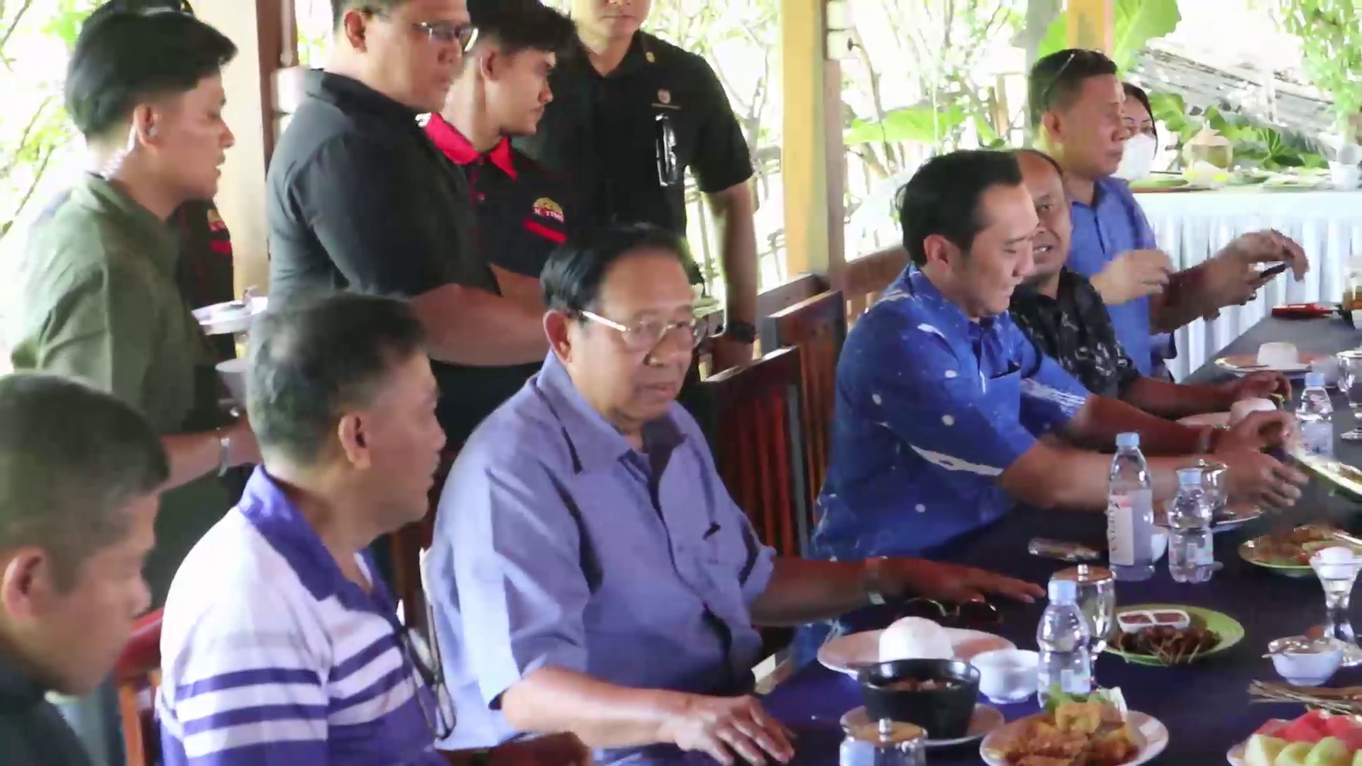 Dalam kesempatan itu, SBY juga menyapa kader Partai Demokrat yang sudah menunggu di tenda. Acara bertajuk ‘Temu Kader Partai Demokrat Bersama Bapak SBY Presiden RI ke-6’ ini berlangsung di halaman belakang rumah makan.
