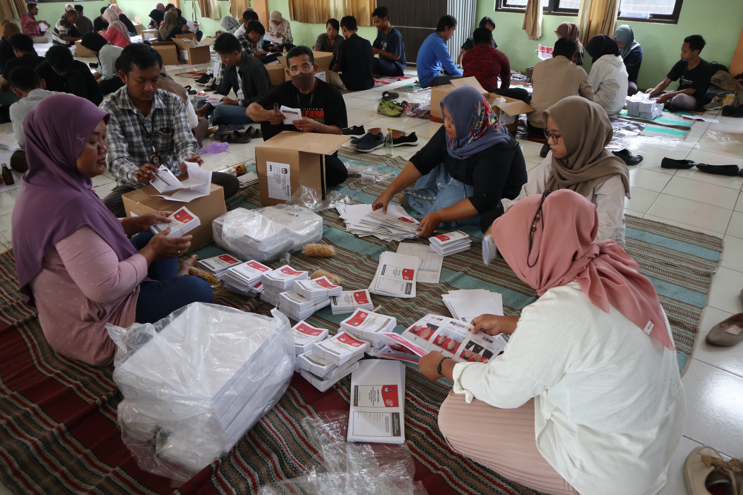 KEBUMEN, Kebumen24.com- Untuk penyortiran dan pelipatan surat suara, Komisi Pemilihan Umum (KPU) Kabupaten Kebumen mengerahkan tak kurang dari 390 warga. Para warga ini merupkan calon KPPS, yang dilibatkan untuk bekerja di sejumlah Gudang logistik KPU.