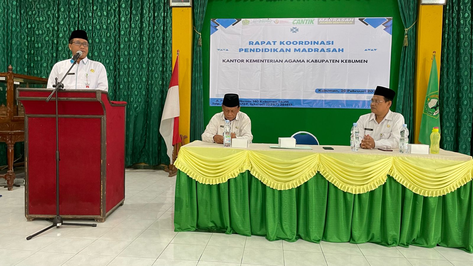 Adapun Rakor diikuti oleh seluruh Kepala Madrasah Negeri dan Swasta mulai tingkat RA, MI, MTs dan MA di lingkungan Kantor Kementerian Agama Kabupaten Kebumen. Turut hadir mendampingi Kakankemenag, Kasi Pendidikan Madrasah Khamid dan Pengawas Madrasah Sudarman.(K24/*).