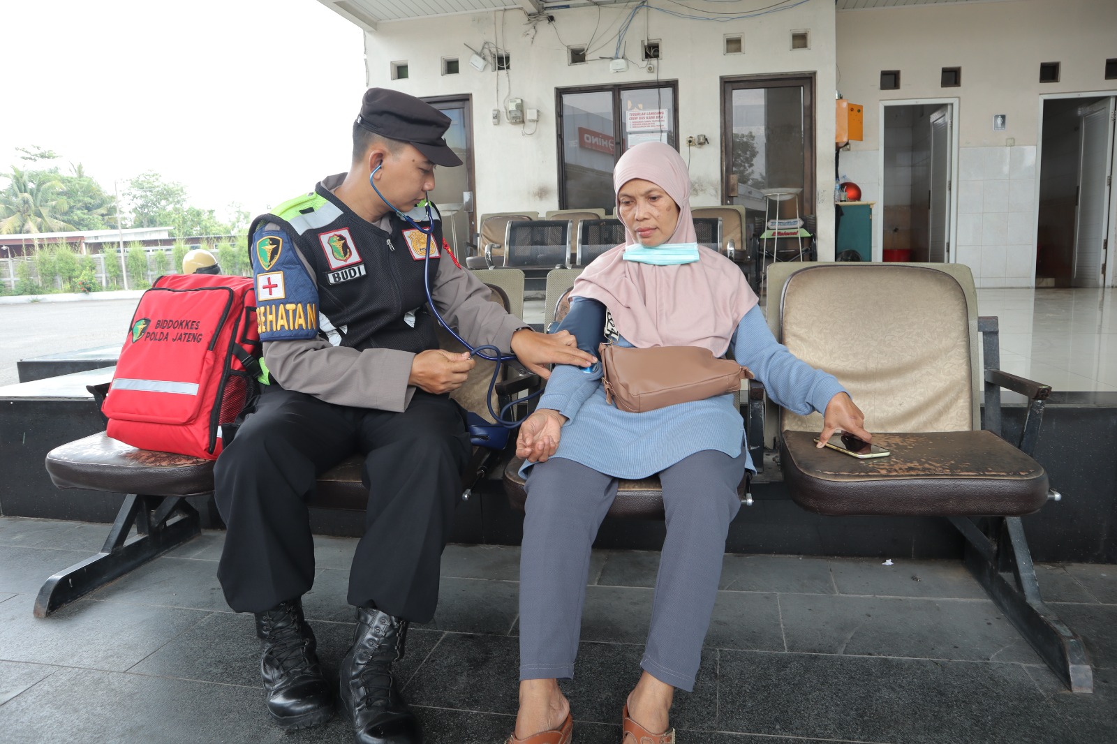 Kasidokkes Polres Aipda Dian Budi Mulyono saat melakukan pengecekan kesehatan menemukan ada beberapa pemudik yang kurang sehat karena kecapean. terutama tekanan darah pemudik.