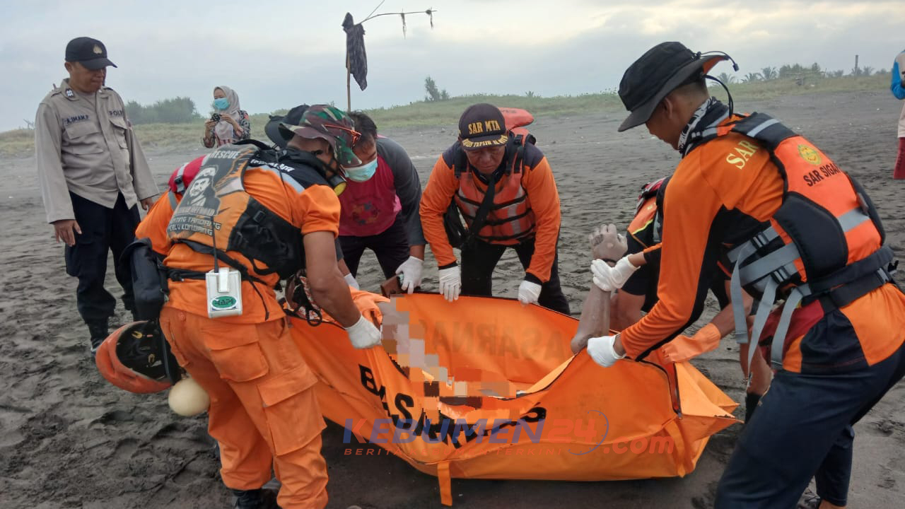 KEBUMEN, Kebumen24.com – Sempat dilaporkan hilang terbawa arus ombak saat mandi di pantai pada hari Jumat 24 Mei 2024, sore, korban inisial KS warga warga Desa Ketug, Kecamatan Butuh, Purworejo, ditemukan meninggal dunia.