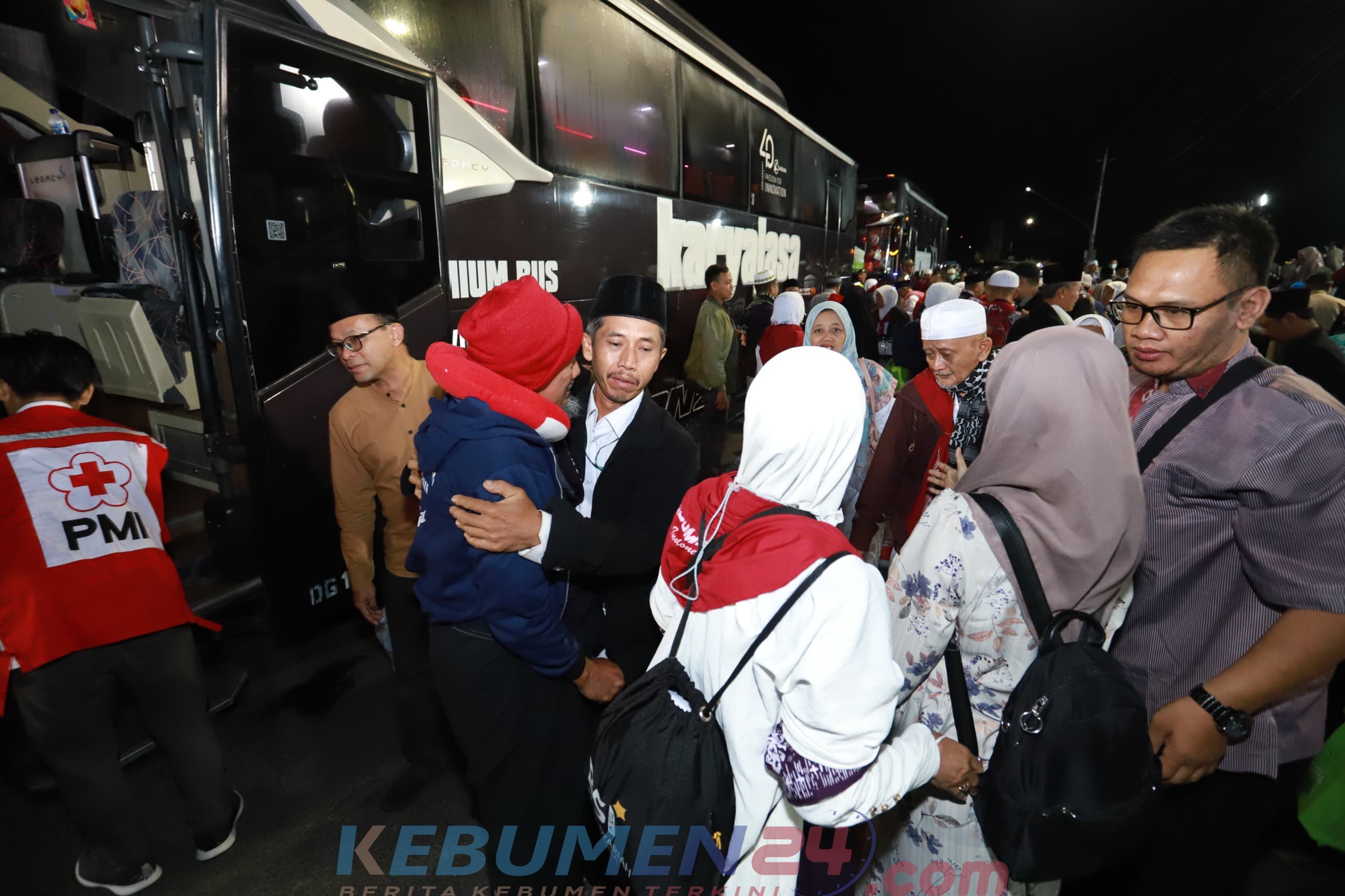 KEBUMEN, Kebumen24.com – Kepulangan Jemaah haji asal Kabupaten Kebumen dari Tanah Suci Makkah disambut dengan wajah penuh haru bercampur bahagia oleh sanak keluarga, saudara dan kebarat.