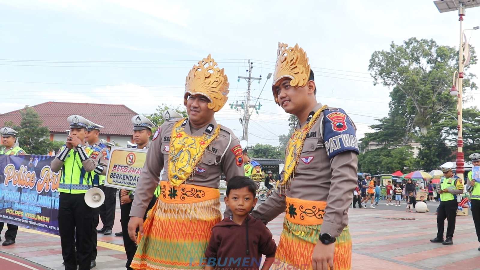 Dalam suasana meriah, anggota Sat Lantas Polres Kebumen tampil unik dengan mengenakan pakaian adat. Diiringi alunan musik angklung, mereka berbaur dengan masyarakat, menyampaikan pesan-pesan keselamatan lalu lintas dengan cara yang lebih dekat dan menyenangkan.